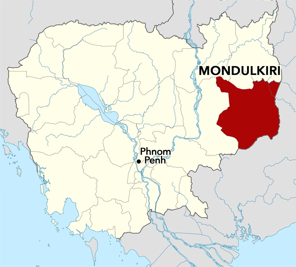 モンドルキリ州はカンボジアの東部、ベトナムとの国境付近に位置しています。